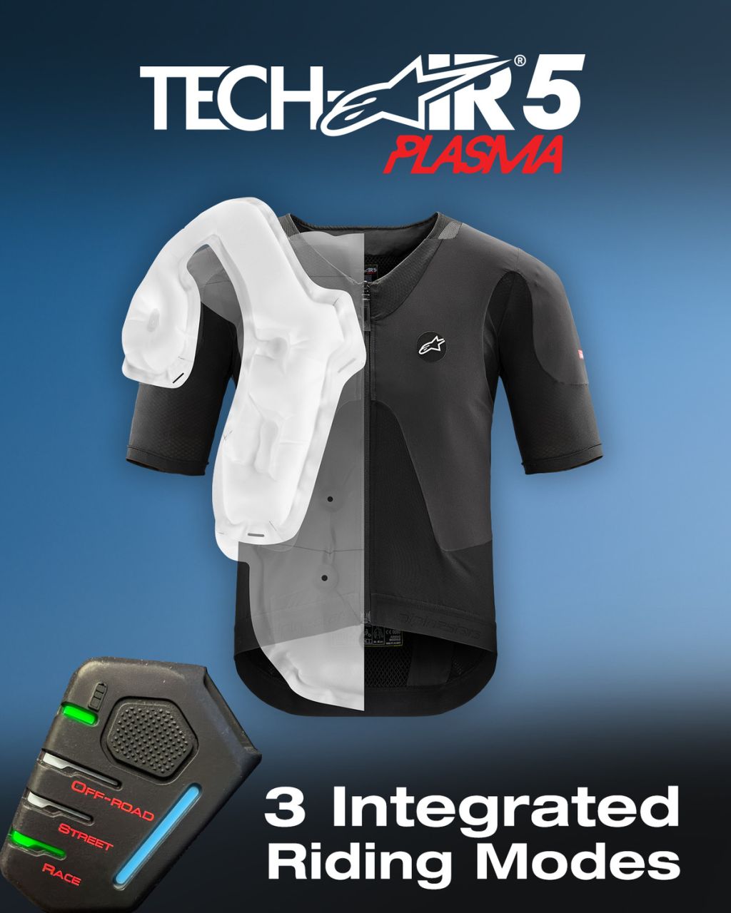 Díky vývoji s mnohaletými zkušenostmi v sortimentu autonomních, airbagových vest společnosti ALPINESTARS jsou systémy TECH-AIR® hráčem č. 1 v oblasti ochranných technologií a systém TECH-AIR®5 PLASMA je aktuálně jedním z posledních přírůstků do rodiny ALPINESTARS TECH-AIR®. Vesta je navržena jako ultralehká, s jedinečným komfortem a "neviditelným" střihem při zachování ochrany těla v oblastech trupu vč. hrudi, žeber, zad a ramen. Zádový protektor s technologií PLASMA napomáhá zajišťovat optimální komfort, pružnost, prodyšnost a ochranu uživatele. Díky pokročilému algoritmu současné verze vesta disponuje třemi volbami jízdního režimu s možností STREET (silniční provoz), RACE (okruh) a OFFROAD (možnost jízdy po nezpevněných cestách v terénu). TECH-AIR®5 PLASMA disponuje jednou bombičkou s plynovou kartuší, kterou je možné snadno a rychle vyměnit koncovým uživatelem vesty.