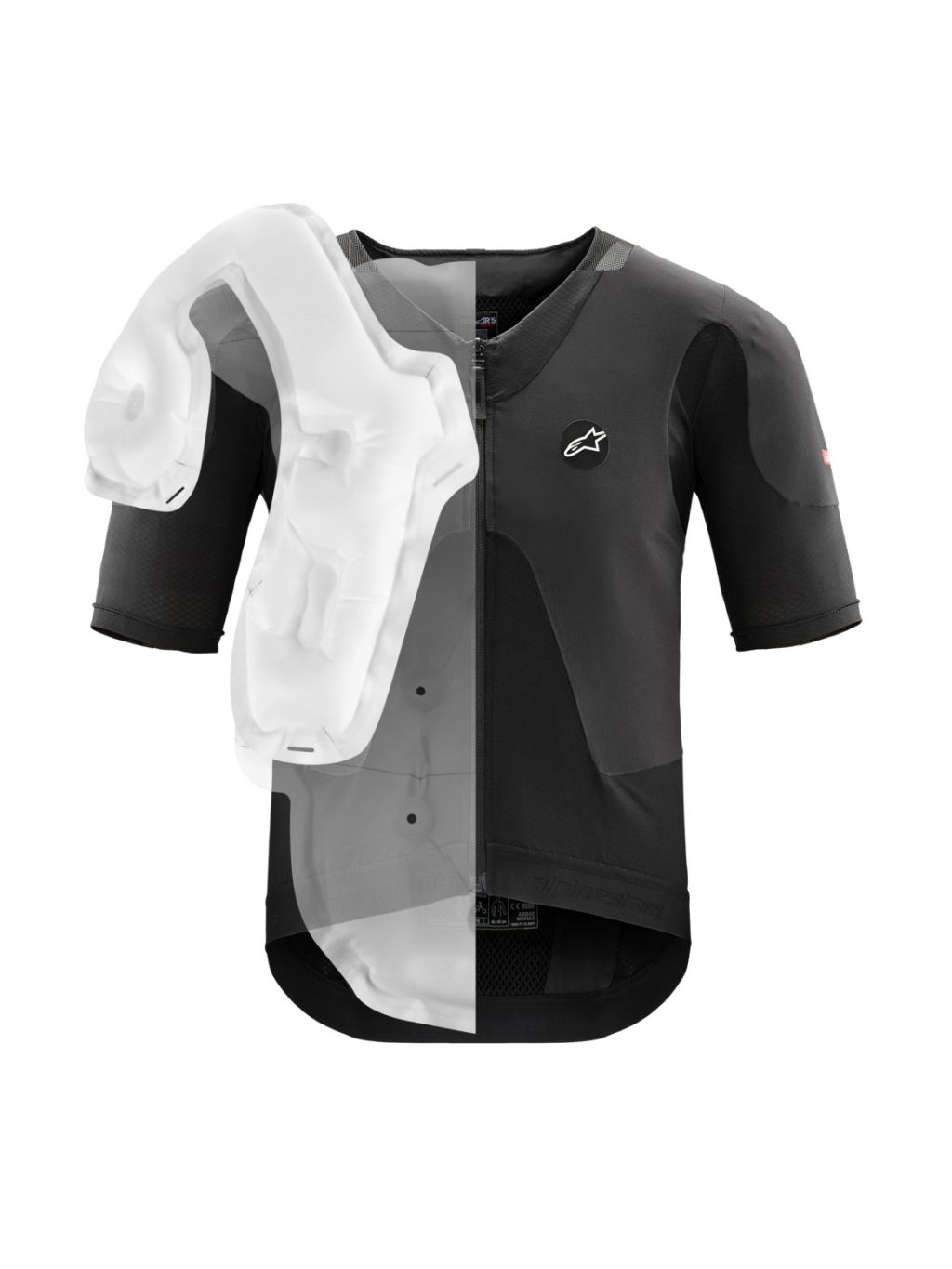 Optimalizovaná, ultralehká a tenká, jednovrstvá konstrukce s podílem streč síťoviny je navržená tak aby obepínala horní partie těla v oblastech vložky airbagového vaku a minimalizovala vrstvení materiálu.