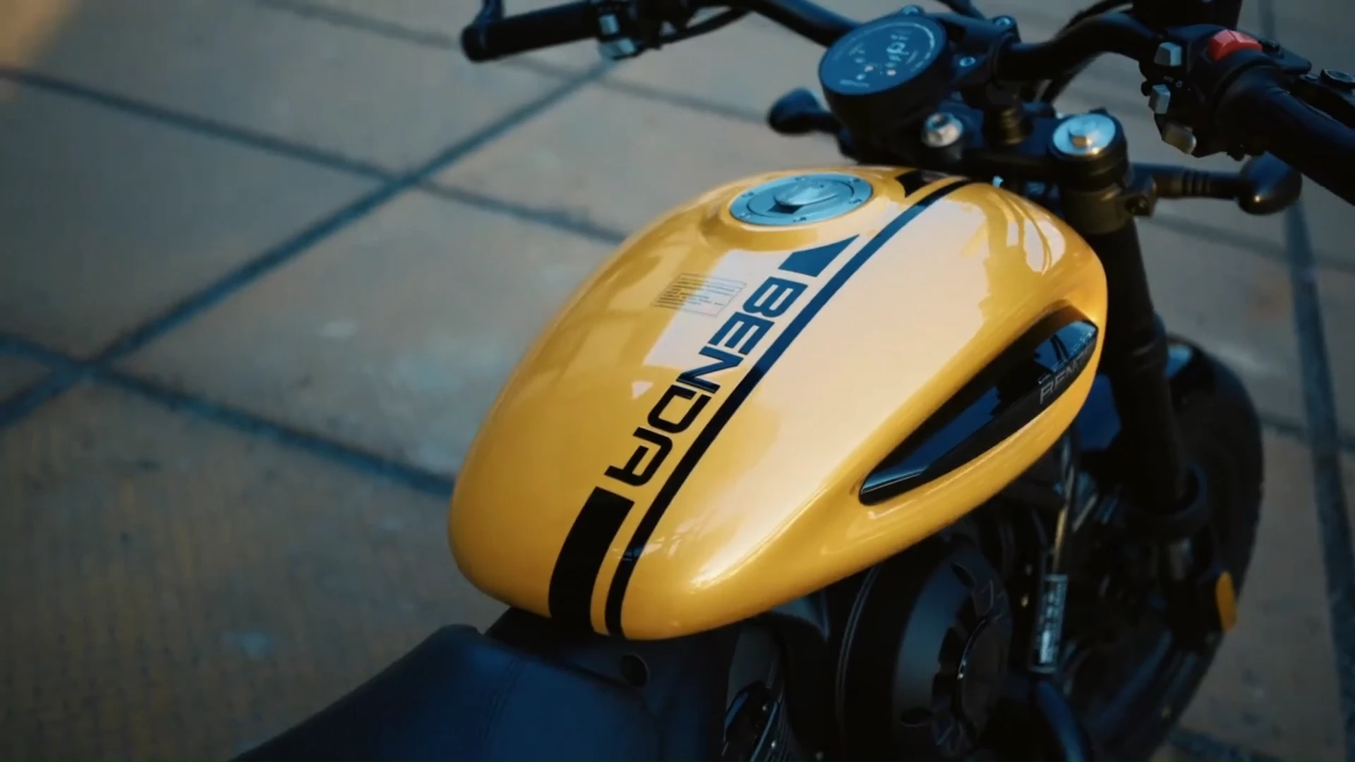 Retro inšpirované kruhové usporiadanie, zasadené do elegantného čierneho rámčeka, prirodzene ladí s neo-klasickým štýlom motocykla a zároveň zaisťuje intuitívnu orientáciu počas jazdy. Výsledkom je prístrojovka, ktorá kombinuje nostalgický charakter s presnosťou, ktorú dnešní motorkári očakávajú – most medzi dizajnovým dedičstvom a inteligenciou moderného jazdenia.
