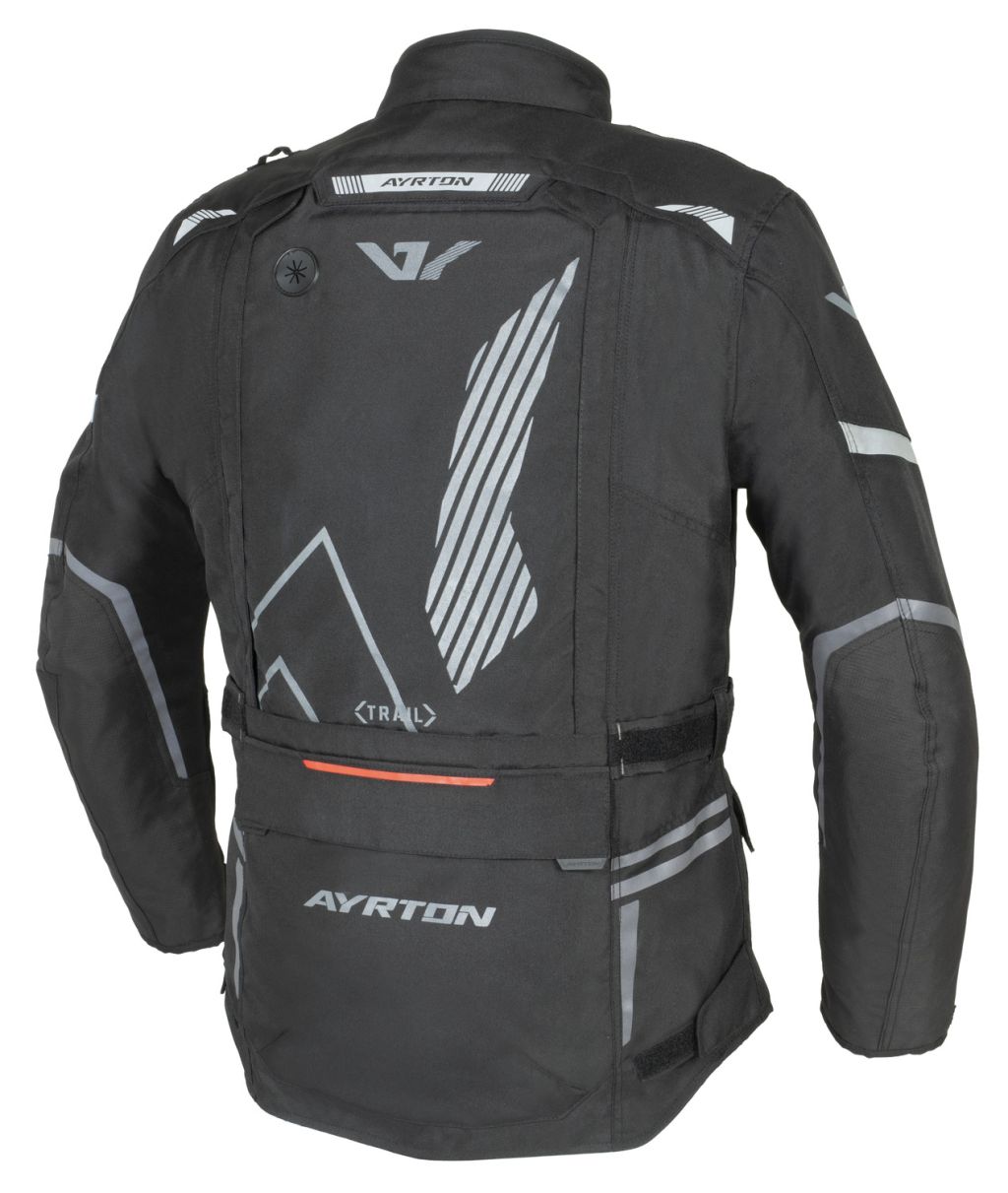 Dlouhá, cestovní, textilní bunda TRAIL disponuje CE certifikovanými protektory LITE PRO, které jsou pružné, lehké, prodyšné a díky malé tloušťce i nenápadné. Vnější polyester obšívka bundy se systémem ventilačních otvorů je doplněna o vnitřní odnímatelné vrstvy v podobě pláštěnky a termo vložky s plnivem z dutých vláken, která ochrání během chladného počasí. Krátký zip YKK® #8 umožňuje propojení bundy a kalhot.