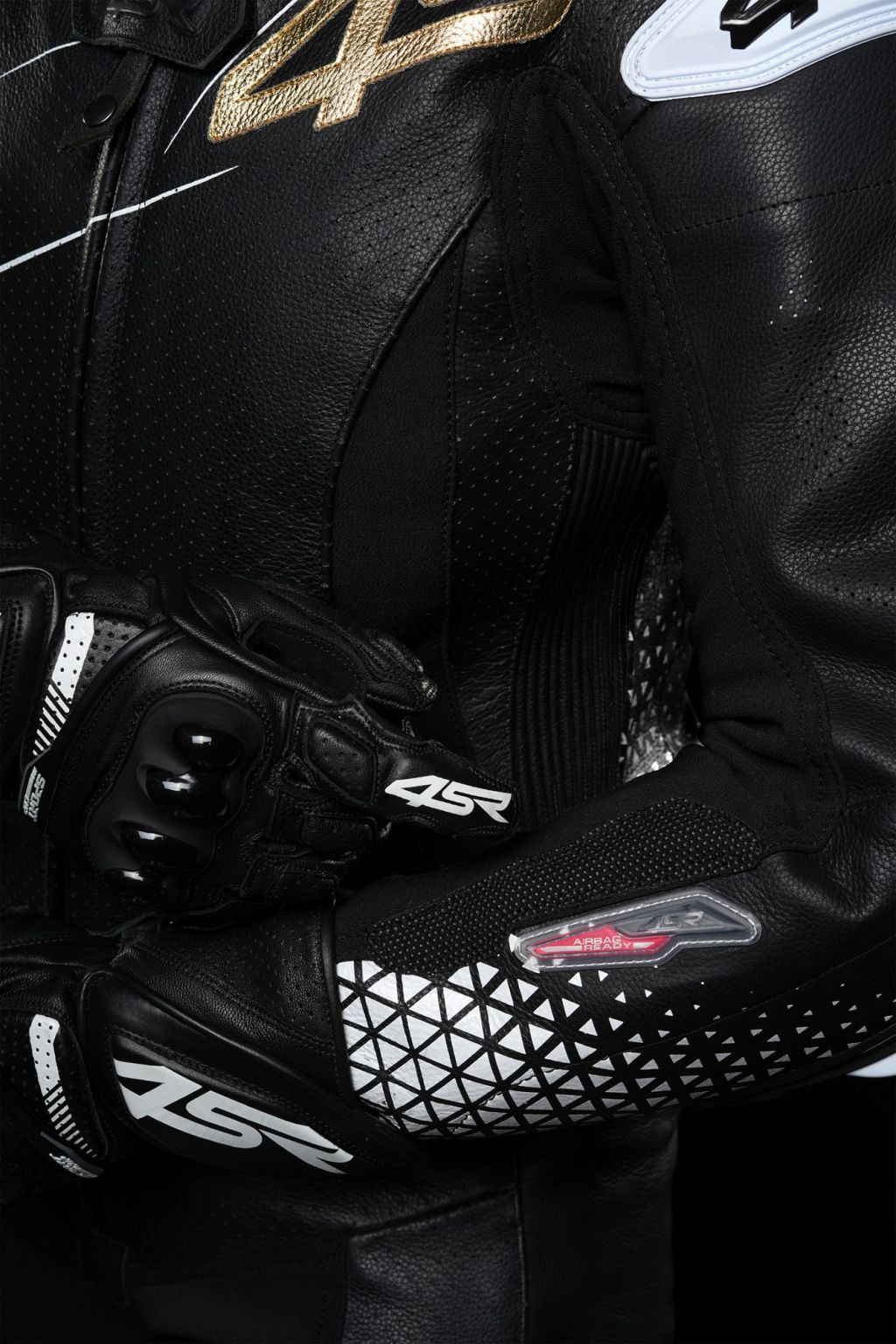 kombinézy 4SR majú na lakťoch, ramenách, bokoch a v sedacej časti kožu v dvoch vrstvách