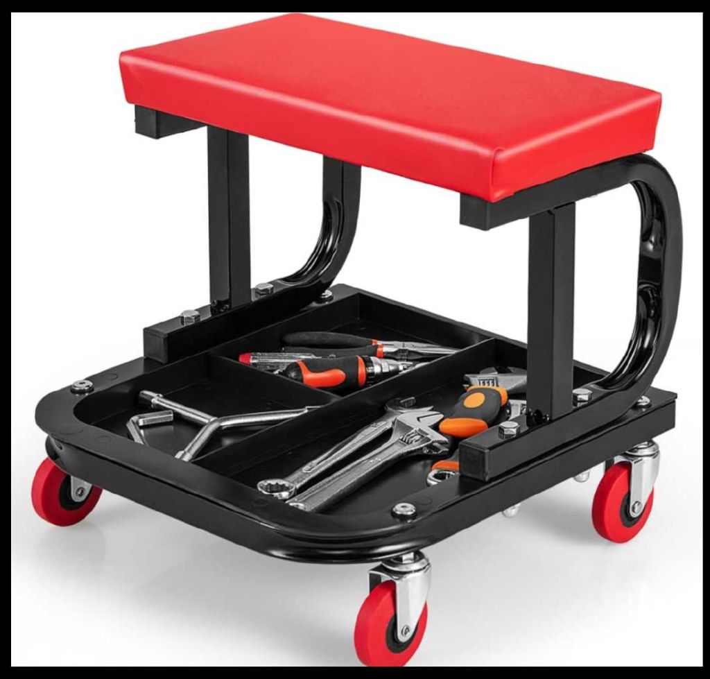 Praktický dílenský sedák na kolečkách nabízí pohodlné sezení při práci v dílně, garáži nebo servisu. Sedák má měkce polstrovaný povrch pro maximální komfort, robustní kovovou konstrukci pro dlouhou životnost a spodní odkládací přihrádku na nářadí či drobné součástky. Čtyři otočná kolečka zajišťují snadný pohyb a mobilitu kolem pracoviště, což výrazně usnadňuje práci v nízkých polohách nebo při opravách vozidel.
