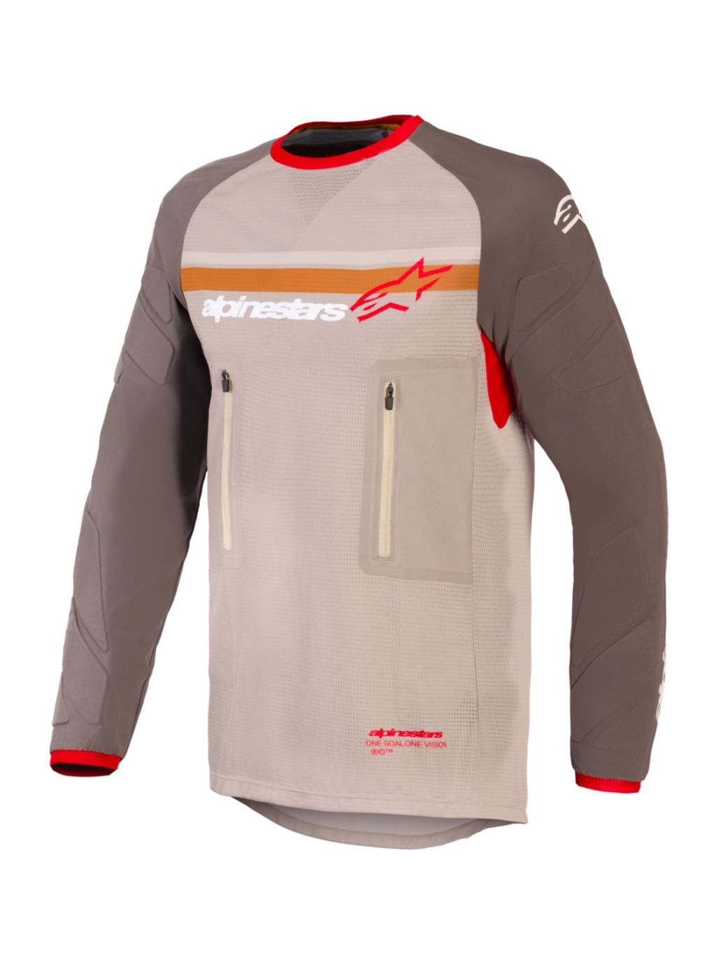 Dres VENTURE R, ALPINESTARS (šedá camo/červená fluo/černá)