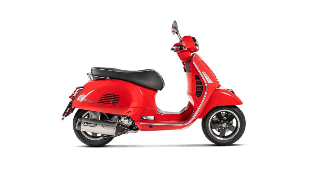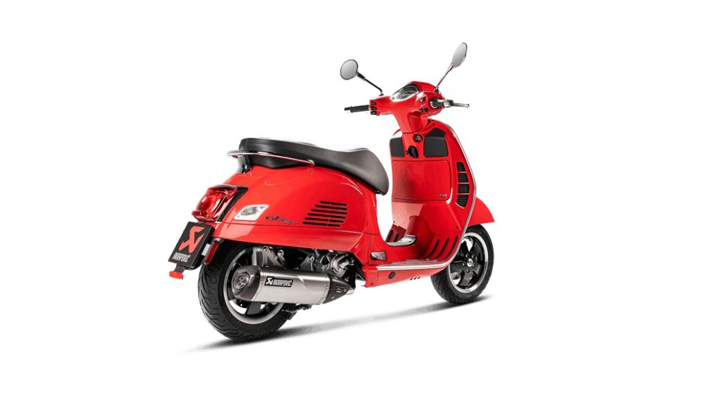 Výfukový systém Akrapovič není kompatibilní pro kombinaci s originální chromovanou sadou Vespa nebo zadní boční ochranou.