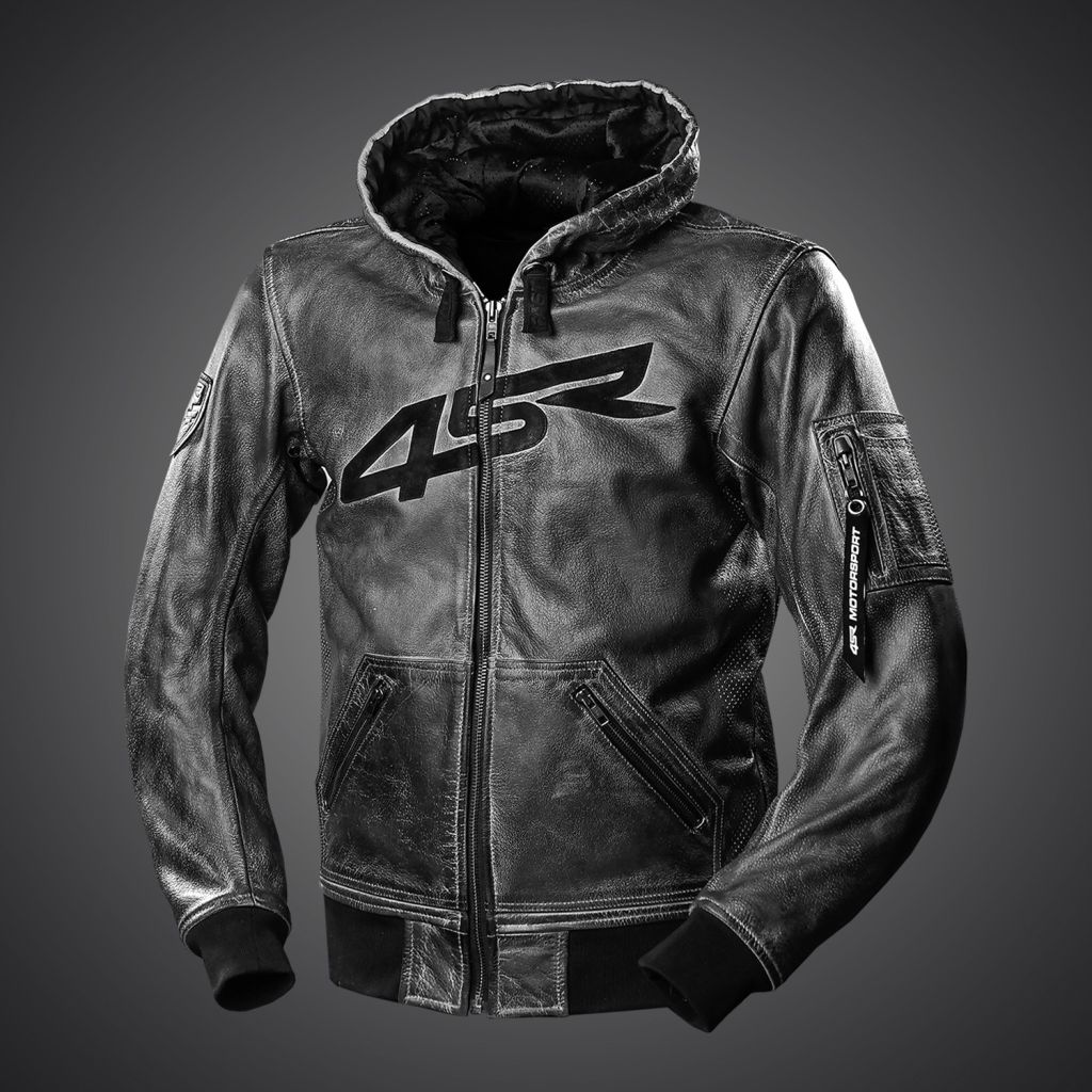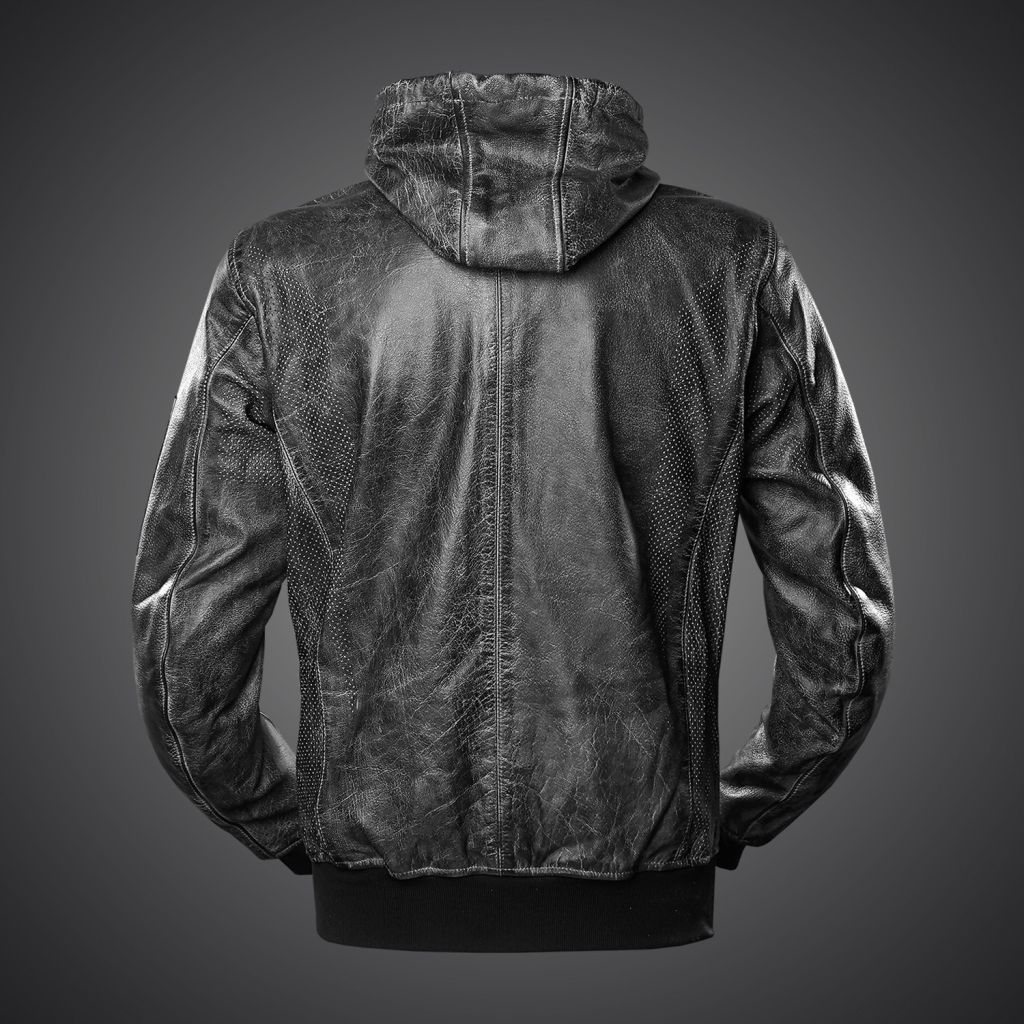 4SR pánska, kožená moto bunda Hoodie Jacket s kapucňou: