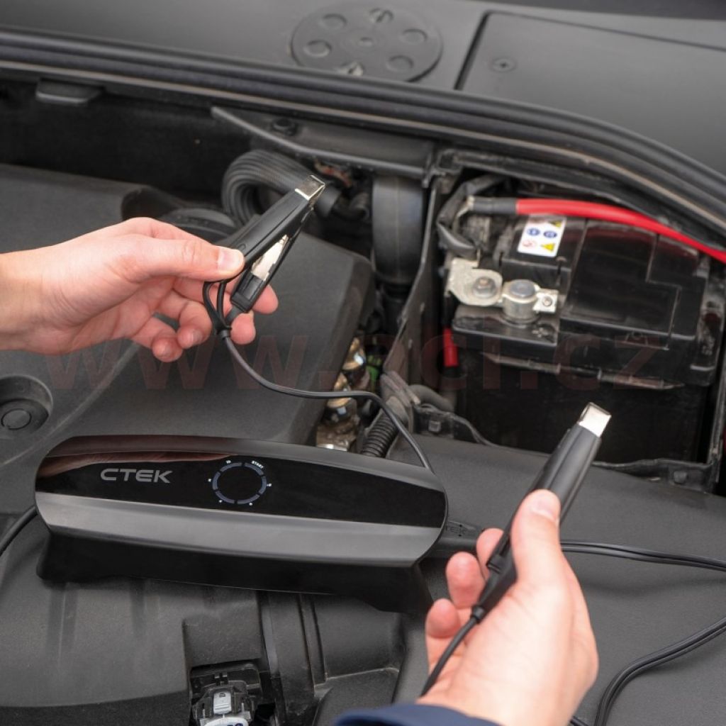 Svorky bez polarity: Obě svorky nabíječky jsou černé, není totiž potřeba řešit, kterou svorku, na který pól připojíte. CS ONE automaticky zjistí, jak jsou svorky na baterii připojeny, případně je interně sama přepojí. Takže se nemůže stát, že svorky připojíte špatně.