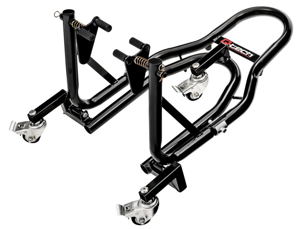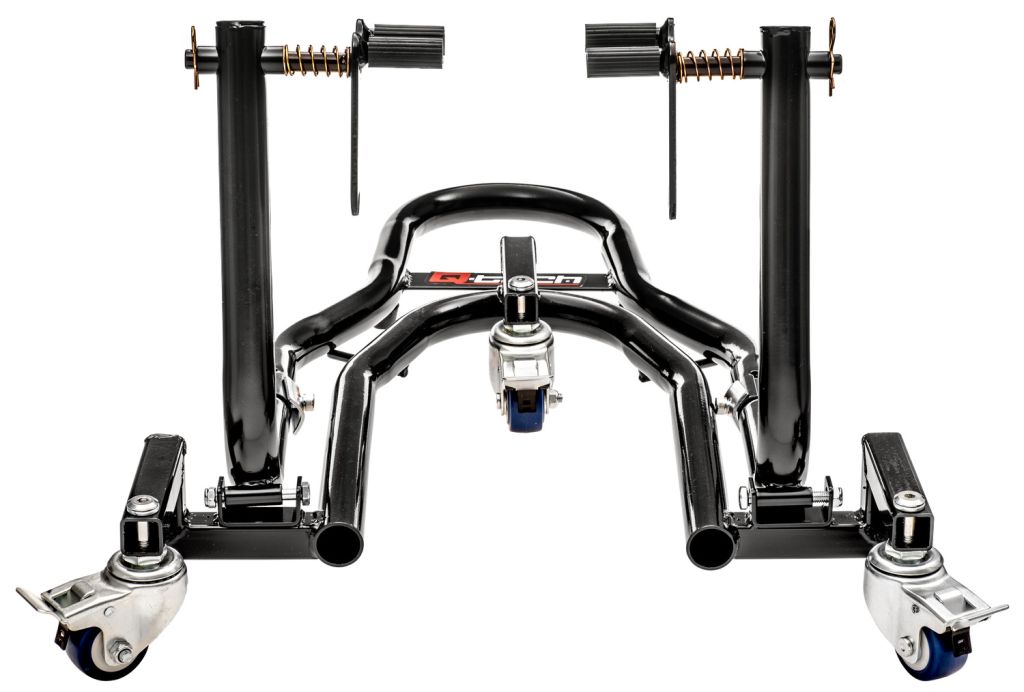 Přední stojan, adaptéry s gumovými protektory pod přední vidlici součástí balení.