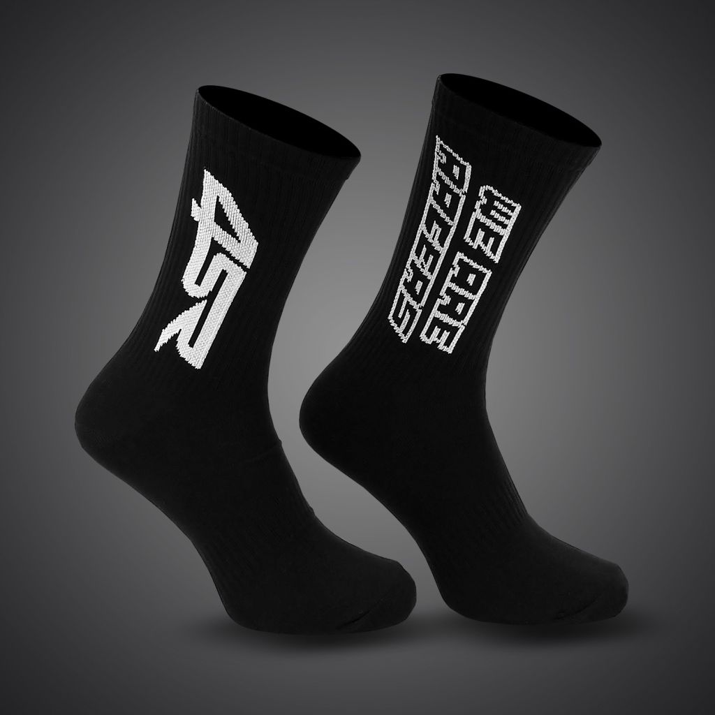 Sme pretekári, a vy tiež! Vysoké ponožky 4SR sú vhodné do tenisiek, kde bude logo/nápis vidieť. Logá sú umiestnené rovnako, ako na závodnej kombinéze, pri výmene strán ponožiek ukazujete vždy iný dizajn. Vlákna použité na výrobu ponožiek sú antibakteriálne, obsahujú striebro.