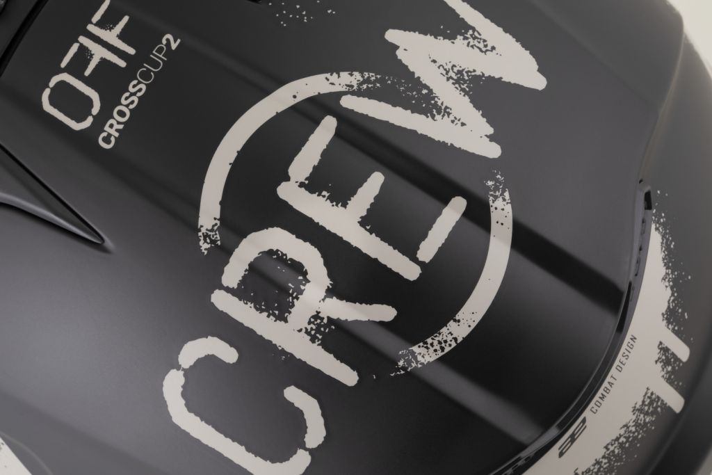 Designová řada CREW v černém matném provedení s kontrastními logy nabízí všestrannou řadu přileb pro terén i město.