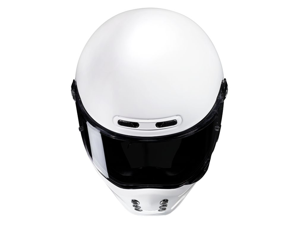 Model V10 presahuje hranice historického vzhľadu vďaka novým moderným prvkom, ako je ľahká škrupina zo sklenných vlákien, aerodynamický dizajn, emergency lícnice pre väčšiu bezpečnosť, odnímateľný a umývateľný interiér a jednoduché skrutky na rýchlu výmenu plexi štítu. Táto prilba je kompatibilná s technológiou Bluetooth Smart HJC.