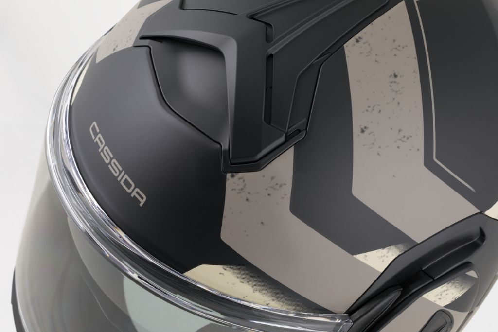 • Dvojí homologace ECE 22.06.P/J pro otevřenou a integrální přilbu s možností fixace výklopné části ve vyklopené poloze pomocí pojistky.