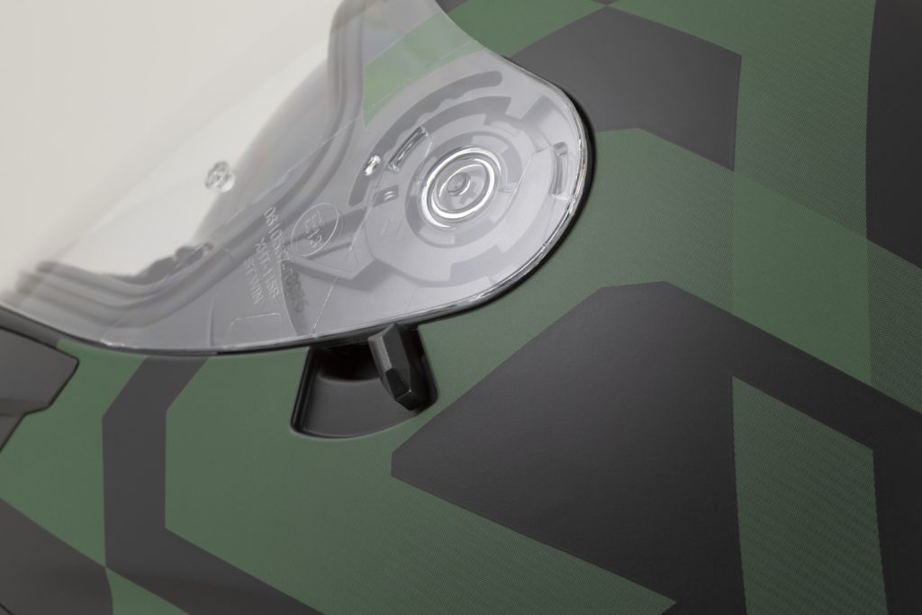 • Rychloodepínací mechanismus plexi s více polohami nastavení pozice a jazýčkem pro docvaknutí plexi v zavřené pozici.