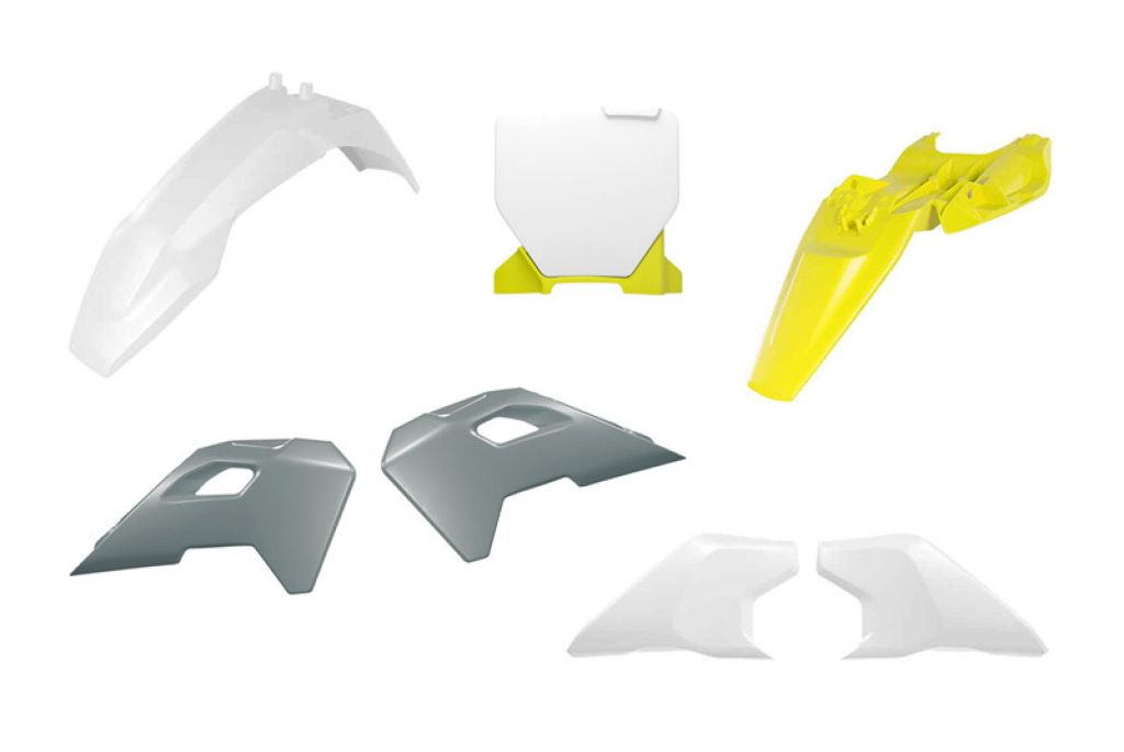 Sada plastov HUSQVARNA, RTECH (bílo-šedo-žlutá, 6 dielov)