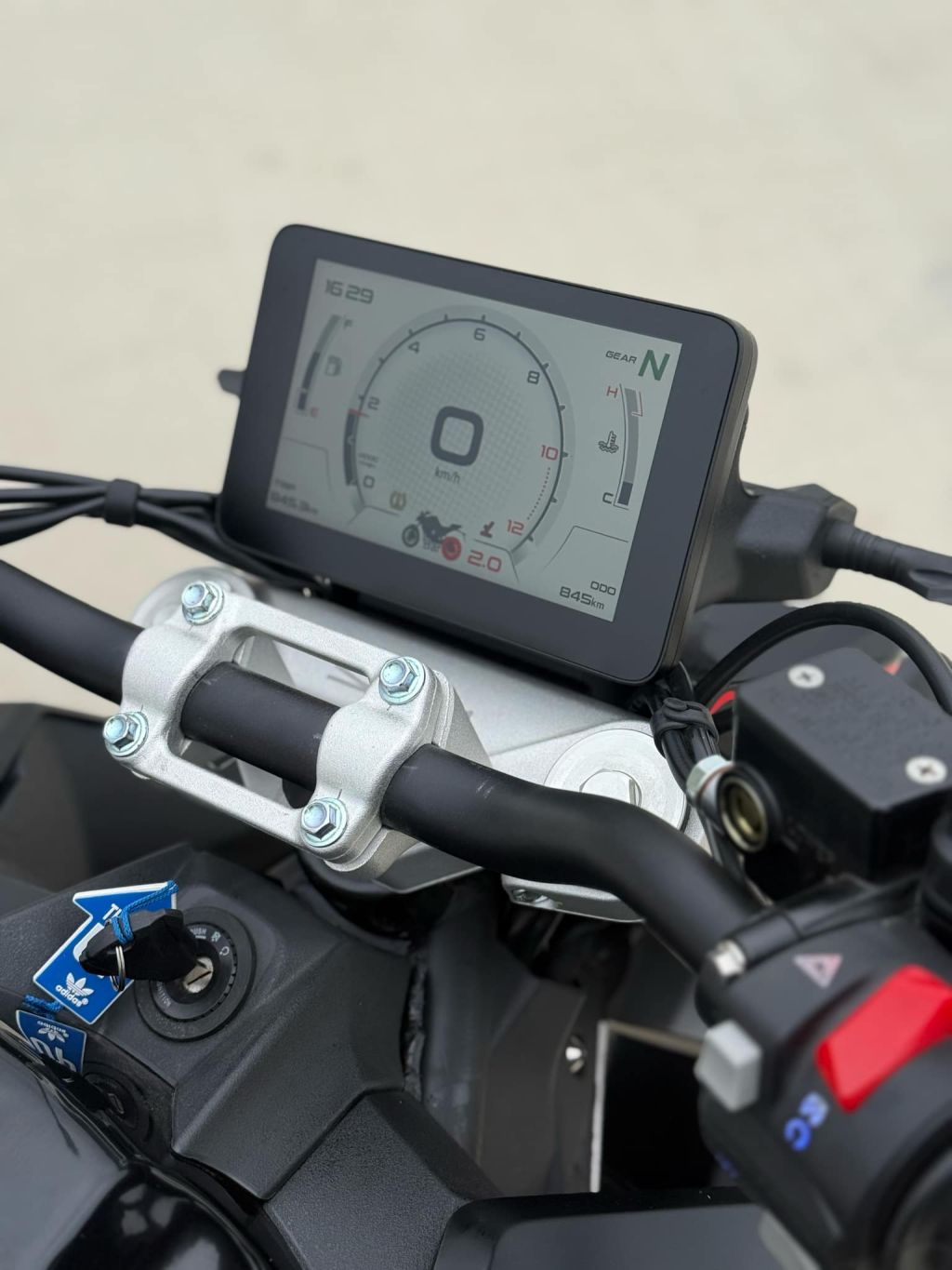 Vidlica a monoshock KAYABA, brzdy BREMBO, pneumatiky Michelin . Bohatou výbavou sú LED svetlomety, subtílne blinkre, 7″ TFT displej interaktívny s mobilným telefónom. Ďalej je vybavený snímačom tlaku v pneumatikách a USB portom.objemom 400 ccm a výkonom 33 kW vyniká pohodlnou jazdnou pozíciou a komfortnou výškou sedla (785 mm), ktorá zaisťuje lepší pocit stability. prei viac inf. volat na tel čislo 0907 765 999 možnosť pre financovania motorky