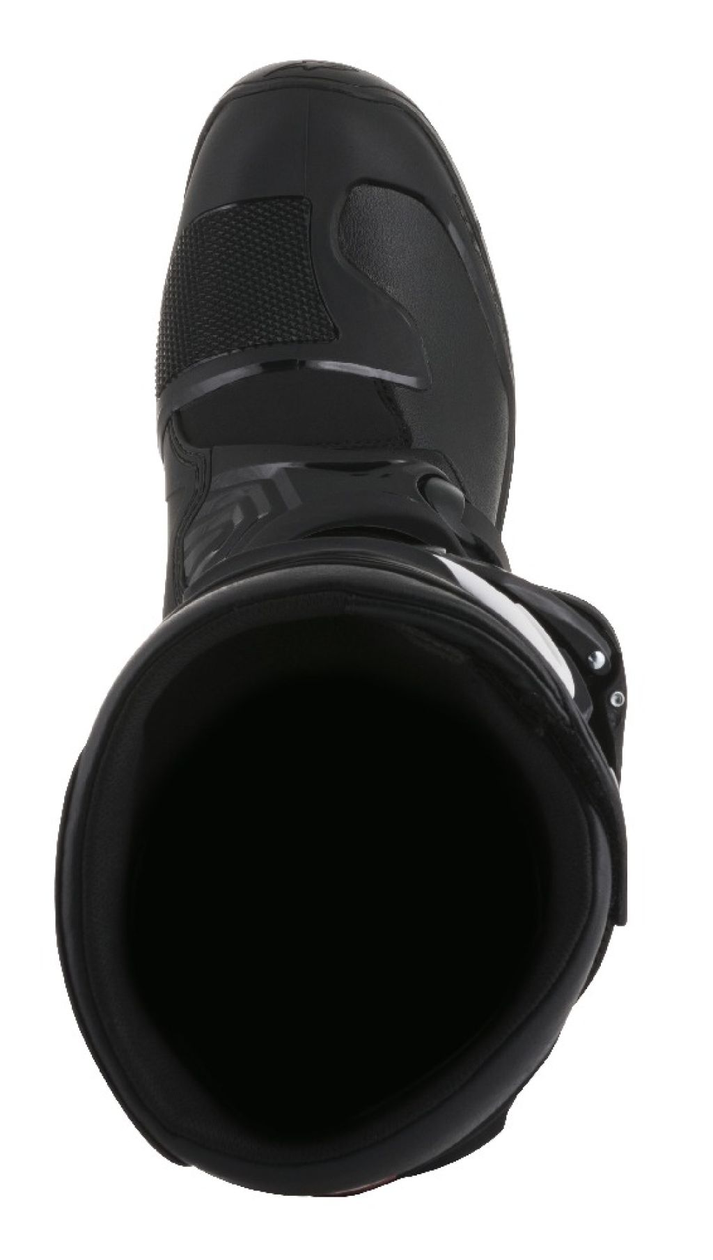 - Vrchní manžeta z pružné syntetické kůže napomáhá minimalizovat vniknutí prachu, bahna a vody do interiéru boty.
