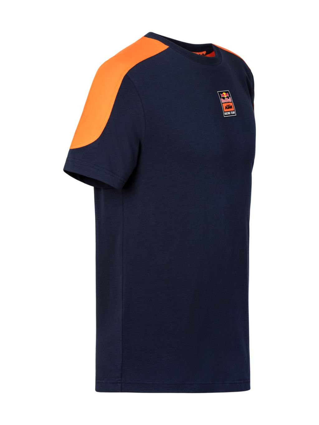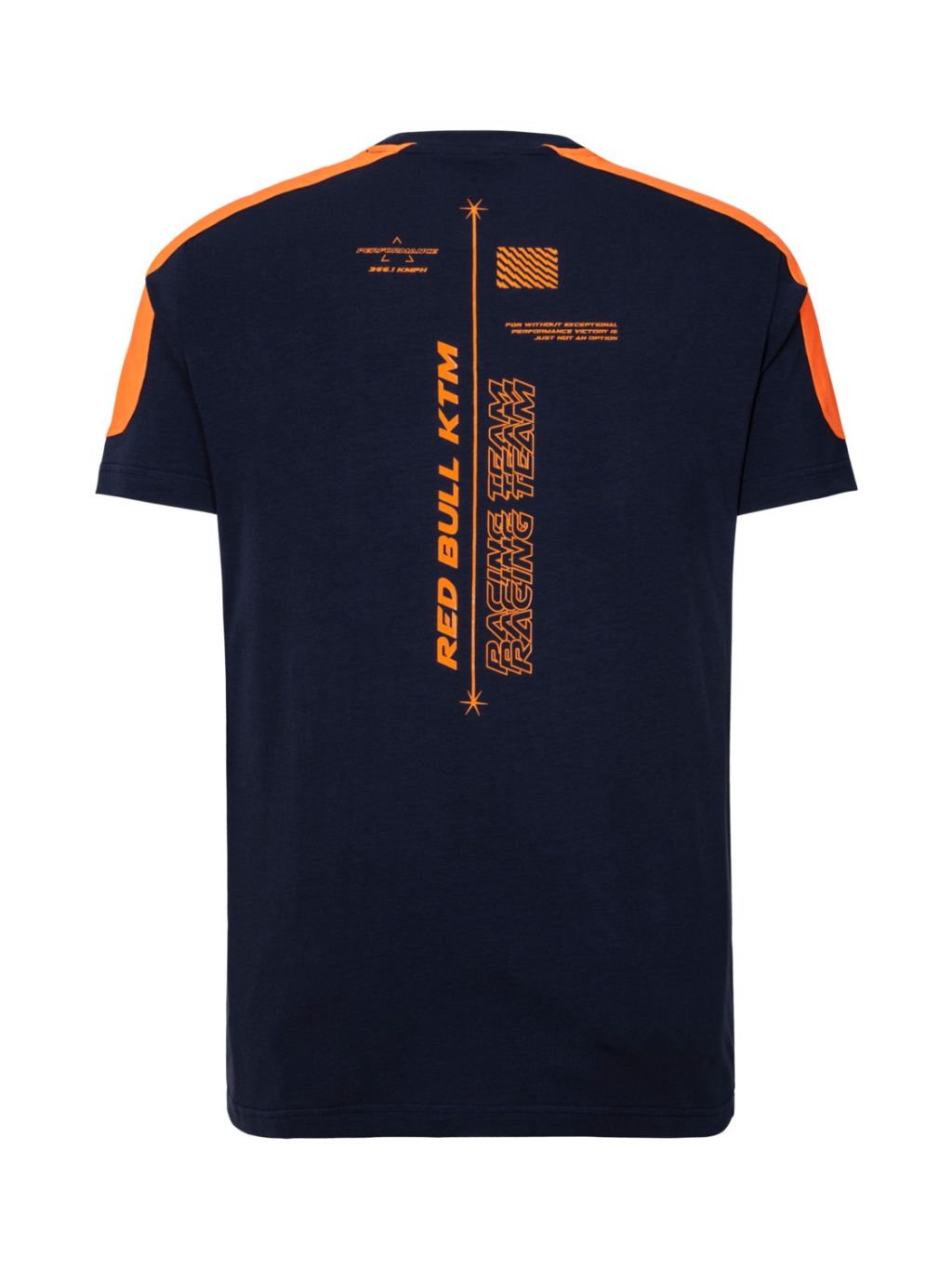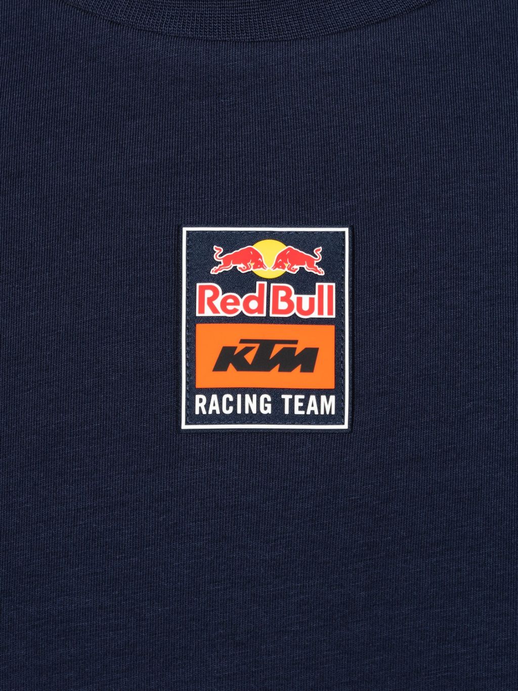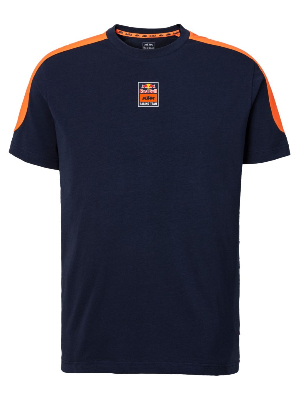 Fanouškovské tričko z oficiální kolekce KTM Red Bull Racing. Tmavě modré tričko s jedinečným potiskem KTM Red Bull Racing na zadní straně. Týmové logo i barvy.